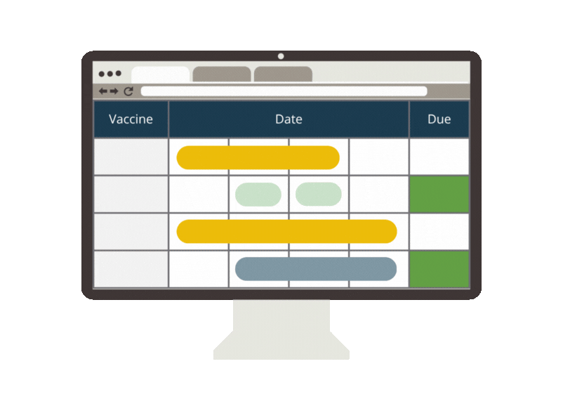 • 将 CDS 集成到 EHR 或 IIS 中后 ,医疗服务提供者可以快速打开健康记录,轻松查看哪些疫苗今天需要接种,哪些疫苗应该安排在以后接种。