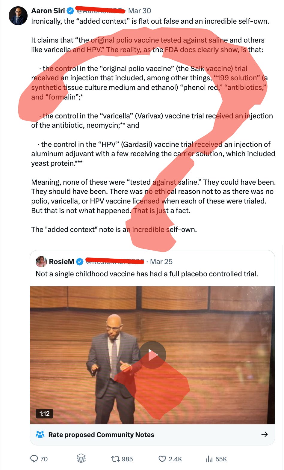 虽然所有这些疫苗都用生理盐水安慰剂进行了测试,但这些研究可能并非 FDA 批准它们所依据的研究,FDA 可能批准了不同的版本,而这些版本并非我们今天使用的版本。毕竟,许多疫苗已经使用了 50 到 75 年以上。而且,自它们最初被发现以来,它们也一直在不断更新!