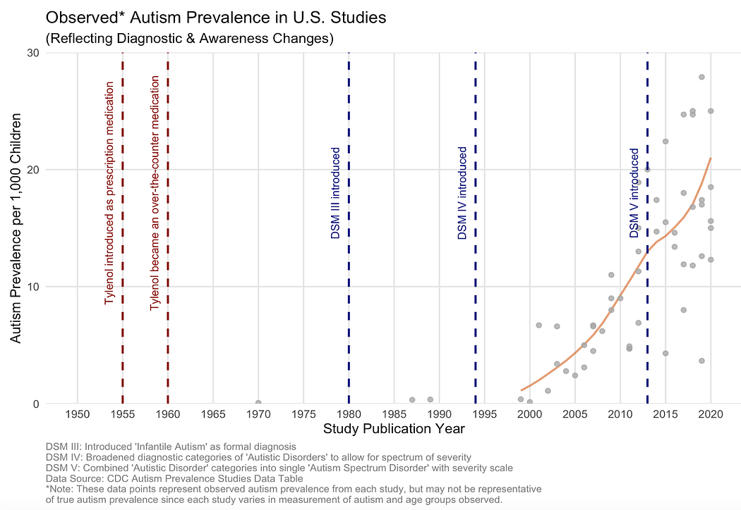 模式很能说明问题:当母亲们在知晓结果之前前瞻性地报告对乙酰氨基酚的使用情况时,这种关联较弱或不存在。而当在诊断后数年再询问时,这种关联则更强。这并非因果关系——而是回忆偏差。