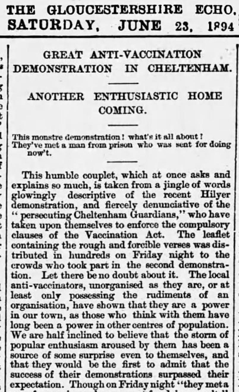 1885 年莱斯特的一次抗议活动虽然降低了该镇的疫苗接种率,但也产生了另一个意料之中的效果。