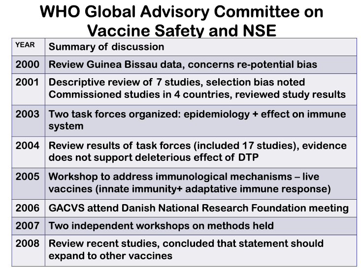 随机试验表明没有证据表明疫苗存在非特异性效应 ——对彼得·阿比所有临床试验的审查发现,他们“系统性地过度解读了随机试验的结果”。